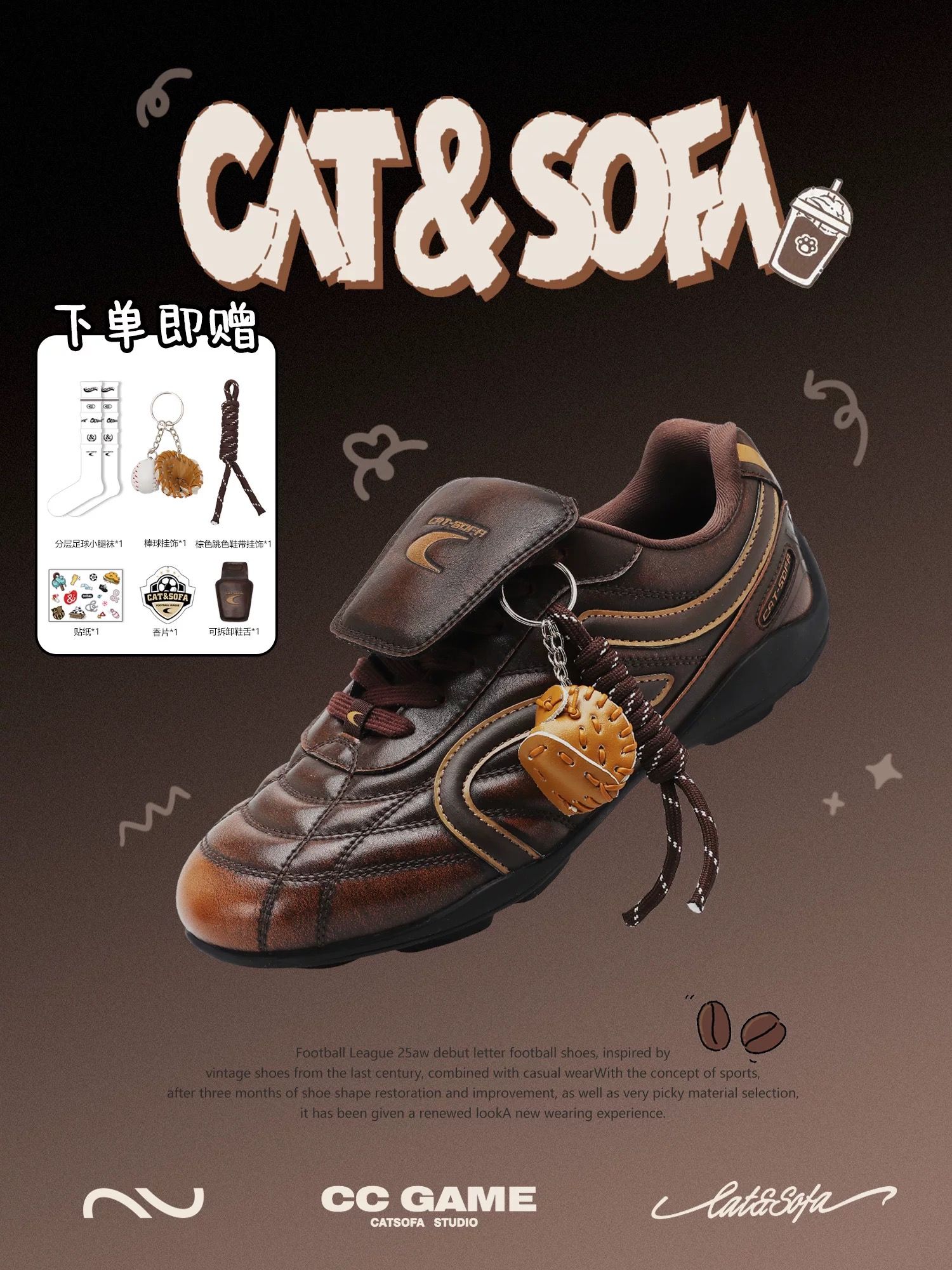 CATSOFA ™️| GIÀY SNEAKER FOOTBALL RUB BROWN UNISEX CAT&SOFA CS25011