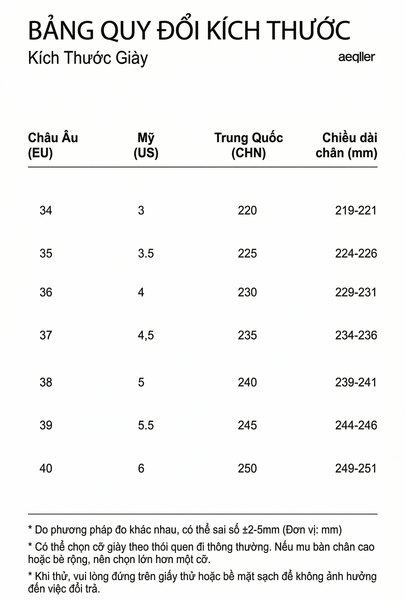BẢNG SIZE GIÀY CATSOFA ™️