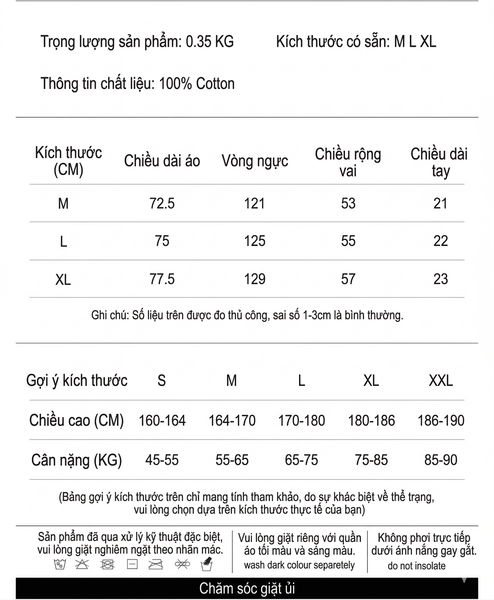 BẢNG SIZE CHI TIẾT MẪU