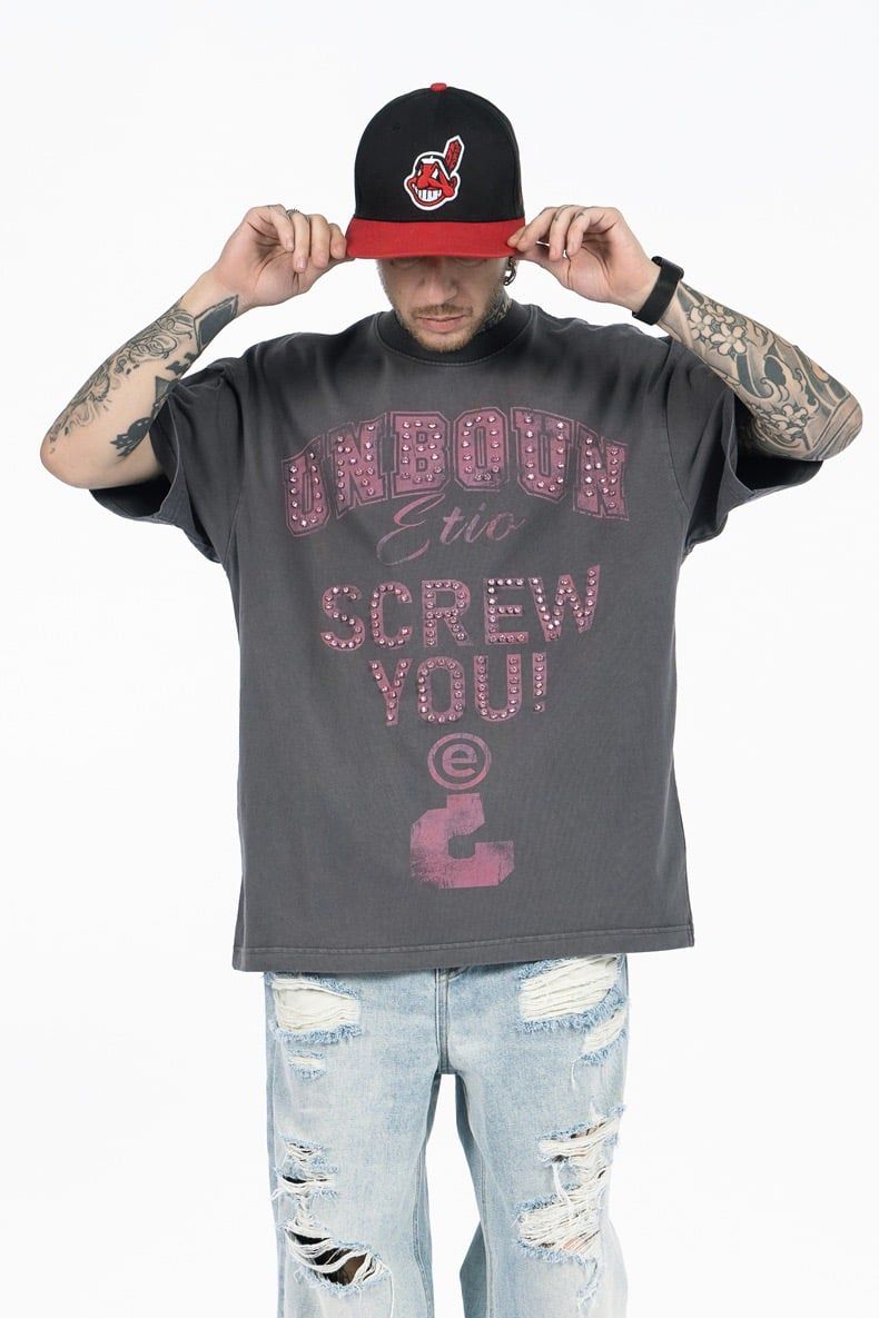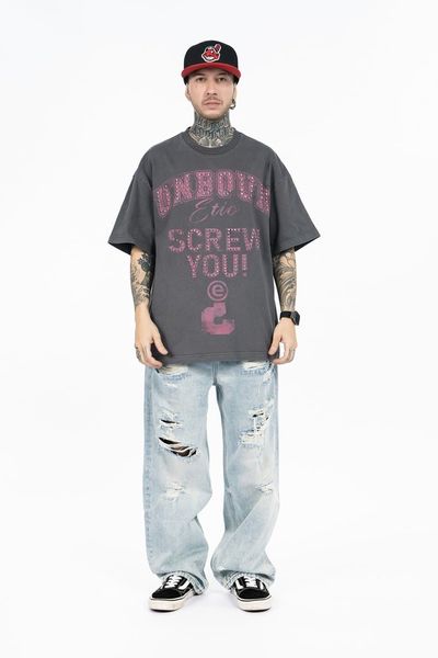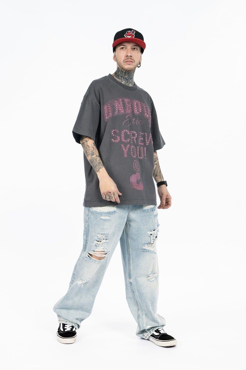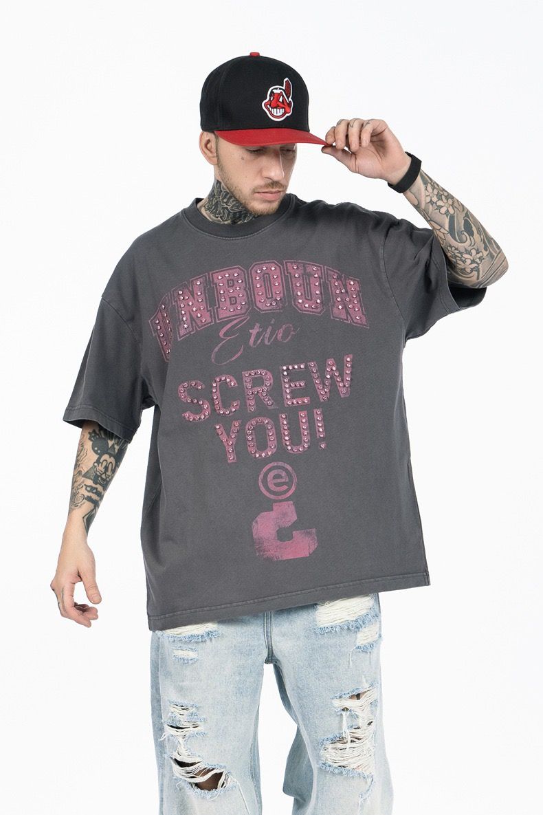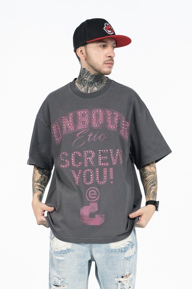 FG®️| ÁO THUN CỔ TRÒN NGẮN TAY IN HÌNH CÁCH ĐIỆU ĐÍNH ĐÁ OVERSIZE FG F564