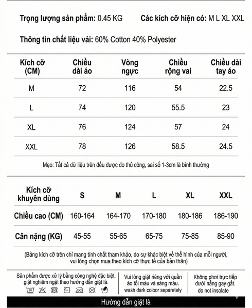 BẢNG SIZE CHI TIẾT MẪU