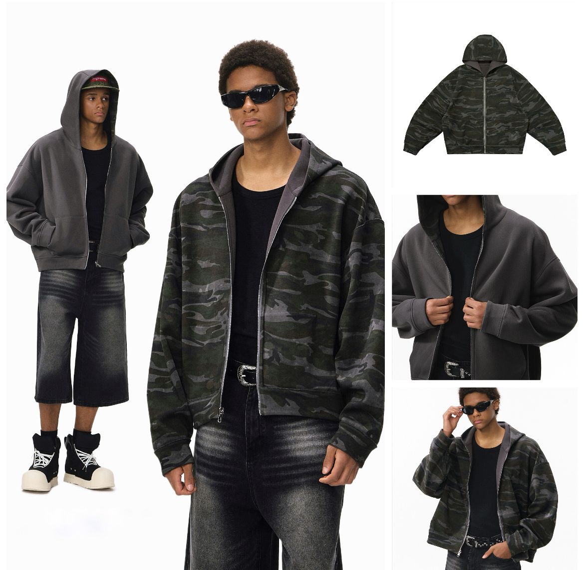 INF®️| ÁO KHOÁC NGỤY TRANG 2 MẶT KHÓA KÉO MŨ TRÙM ĐẦU UNISEX INF 5473