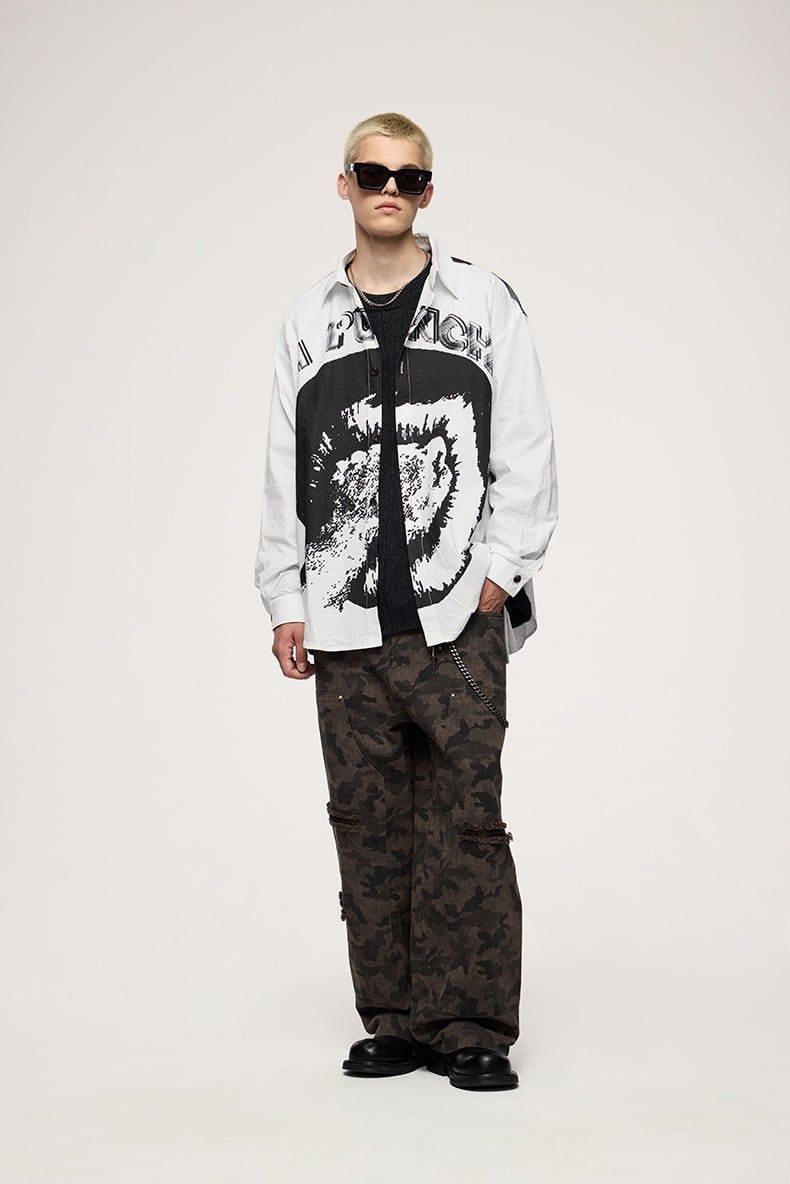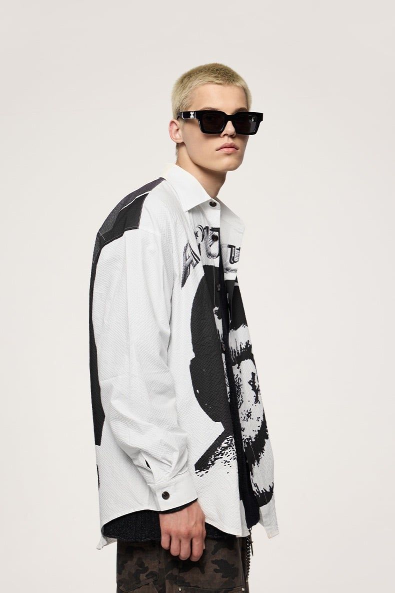 INF®️| ÁO KHOÁC SƠ MI DÀI TAY NHĂN IN HÌNH NHIỆT DÁNG RỘNG UNISEX INF 7099