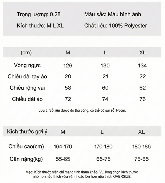 BẢNG SIZE CHI TIẾT MẪU