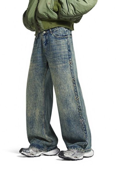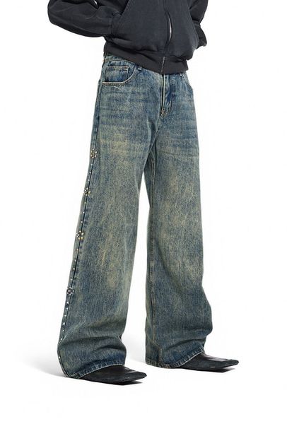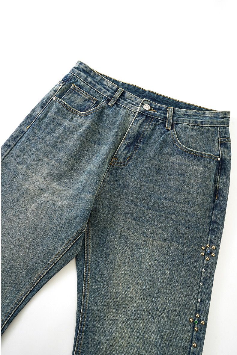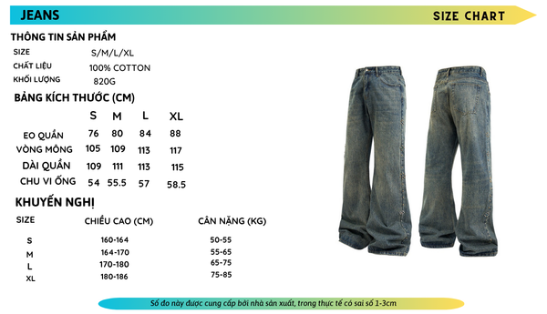 INF®️|QUẦN JEANS ỐNG LOE WASH VINTAGE BEADED WHISKER UNISEX INF 13560