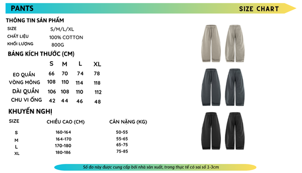 BẢNG SIZE CHI TIẾT SẢN PHẨM