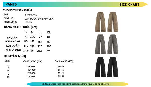 BẢNG SIZE CHI TIẾT SẢN PHẨM