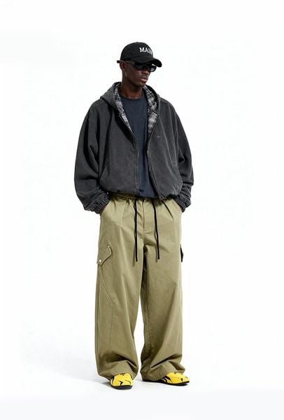 INF®️|QUẦN VẢI THÔ KAKI ỐNG RỘNG ĐÃ GIẶT TÚI HỘP RETRO UNISEX INF 13386