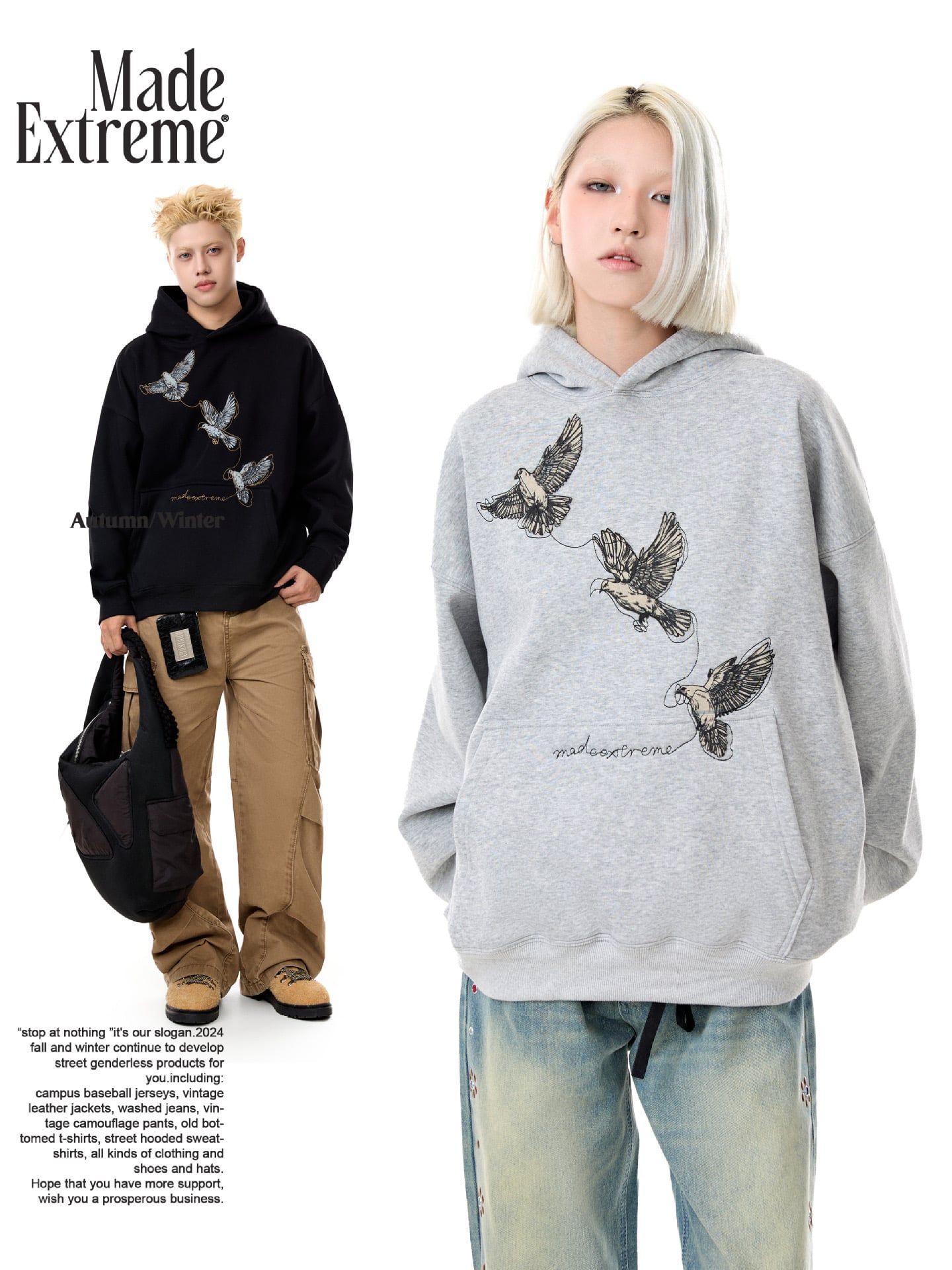 MADEEXTREME®️| ÁO HOODIE BOXY IN HÌNH CHIM BỒ CÂU UNISEX MADE W24007