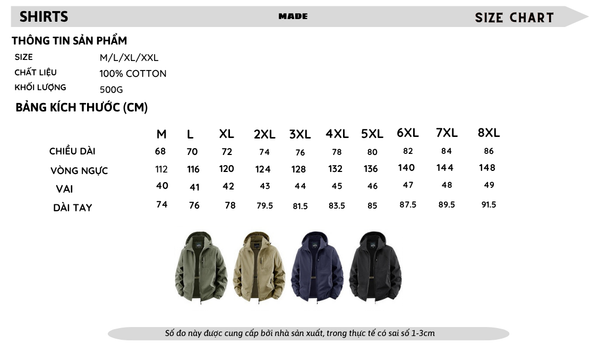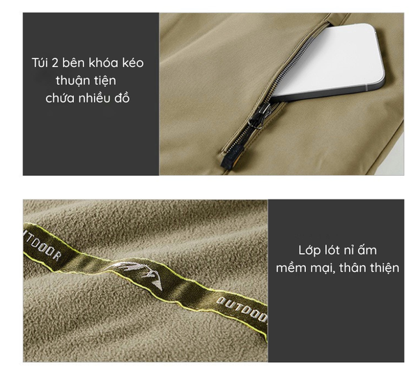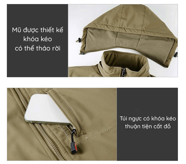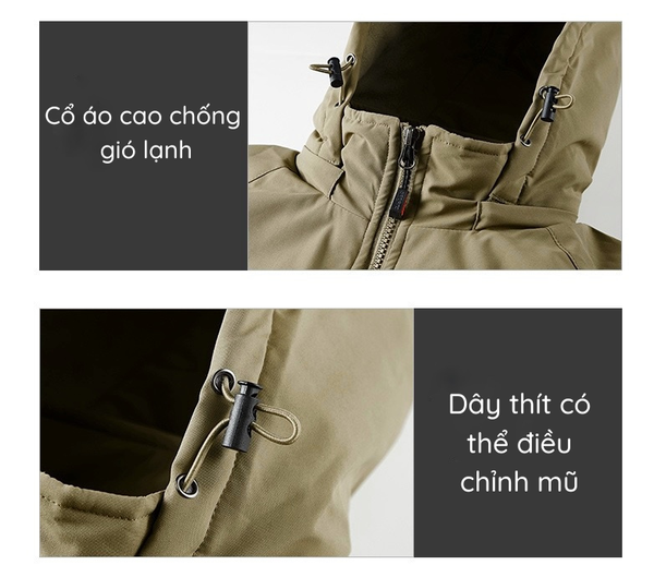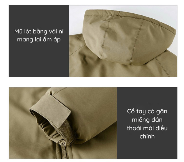 OUTDOOR | ÁO KHOÁC GIÓ MŨ TRÙM ĐẦU CÓ THỂ THÁO RỜI, LÓT LÔNG CỪU ẤM ÁP DẦY DẶN