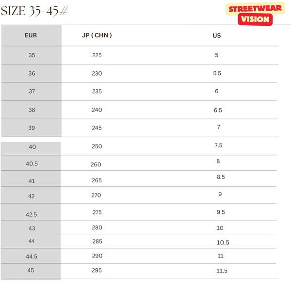 BẢNG SIZE GIÀY VISION