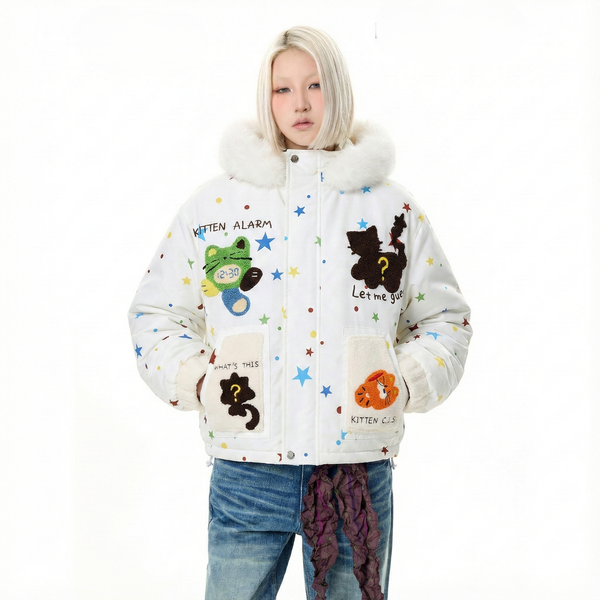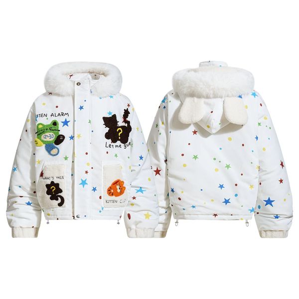 WES®️| ÁO KHOÁC COTTON CỔ LÔNG HỌA TIẾT HOẠT HÌNH DÁNG RỘNG UNISEX 6159