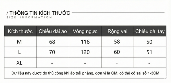 BẢNG SIZE CHI TIẾT SẢN PHẨM